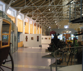 Este es el aspecto general de la sala principal del museo del vino de Cariñena. El edificio era una antigua bodega, ahora rehabilitada como lugar museístico y expositivo. Como se puede apreciar, es interesante al aspecto industrial de la arquitectura.
